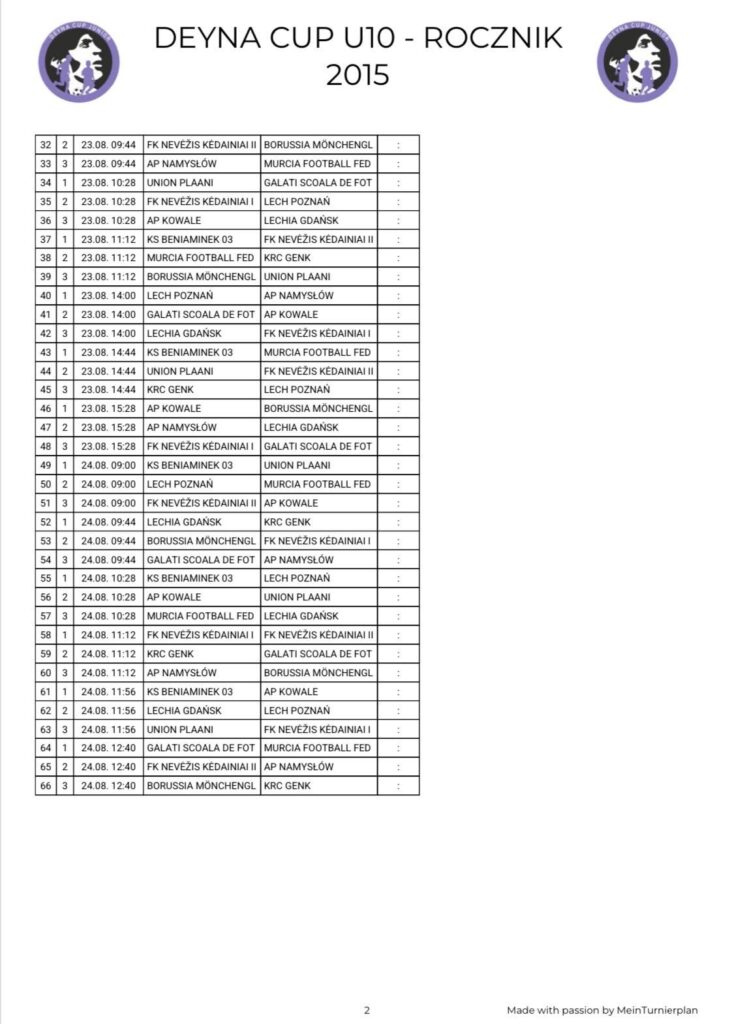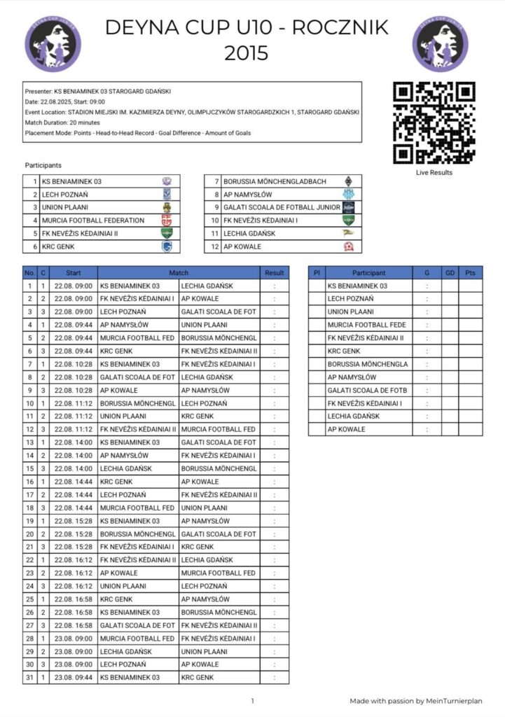 • Harmonogram Turnieju Deyna Cup Junior 2025 U9 oraz U10